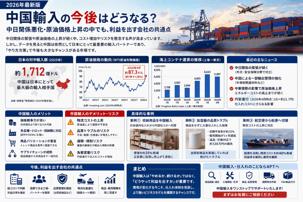 中国輸入の今後はどうなる?中日関係悪化・原油価格上昇の中でも利益を出す会社の共通点【2026年最新版】